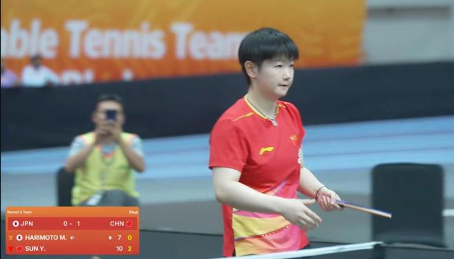 一年前的亚锦赛比赛中,中国女队在决赛中以1-3负于日本队,丢掉了冠军。时隔一年再次在决赛阶段相遇,中国女队没有让同样的故事再次发生。北京时间10月15日,亚洲乒乓球团体锦标赛在印度打响女子团体决赛的争夺。中国女队派出王曼昱、孙颖哈、蒯曼以3-0的大比分横扫日本队,再次夺得亚锦赛团体冠军。国乒在此前的比赛中未曾输过一盘。他们以3-0淘汰泰国队和韩国队,晋级决赛。日本队的晋级之路并非一帆风顺。四分之一决赛面对朝鲜队,两位主力早田希娜和张本美轮不敌朝鲜选手金金英,客场苦战5盘后最终以3-2获胜。击败新加坡队后总比分3-0,日本女队晋级决赛。决赛第一盘由王曼昱对阵桥本穗香。后者今年对阵国乒的战绩不错,曾取得过对阵国乒的11连胜。王艺迪、陈幸同、钱天一等多名国手惨遭失败。直到WTT横滨锦标赛上遇到孙颖莎,连胜才结束。面对这位极具特色的削球手,王曼昱在首局领先的情况下被对手反超,以10-12输掉首局。不过,在逐渐适应了对手的打法之后,王曼昱并没有让悬念再次上升。她以11-3、11-6、11-3连赢三局,帮助中国女队拿下1分。第二盘,孙英哈对阵张本美和。第一场比赛,两人身处一个星系。关键时刻孙颖哈表现更好,11-9拿下首胜。第二局,孙颖哈迅速拉大分差,以11-5再胜一局。第三局结束,孙颖哈连续得分,以11-7锁定胜局。第三盘,快漫对阵早田希娜。早田11-8拿下第一局后,快曼在第二局逐渐找到手感,打成9平10平,最终以12-10重新拿下胜利。紧接着,快曼很快以11-6拿下第三局。第四局,在7-9落后的情况下,快曼奋力追赶,最终以11-9击败对手。